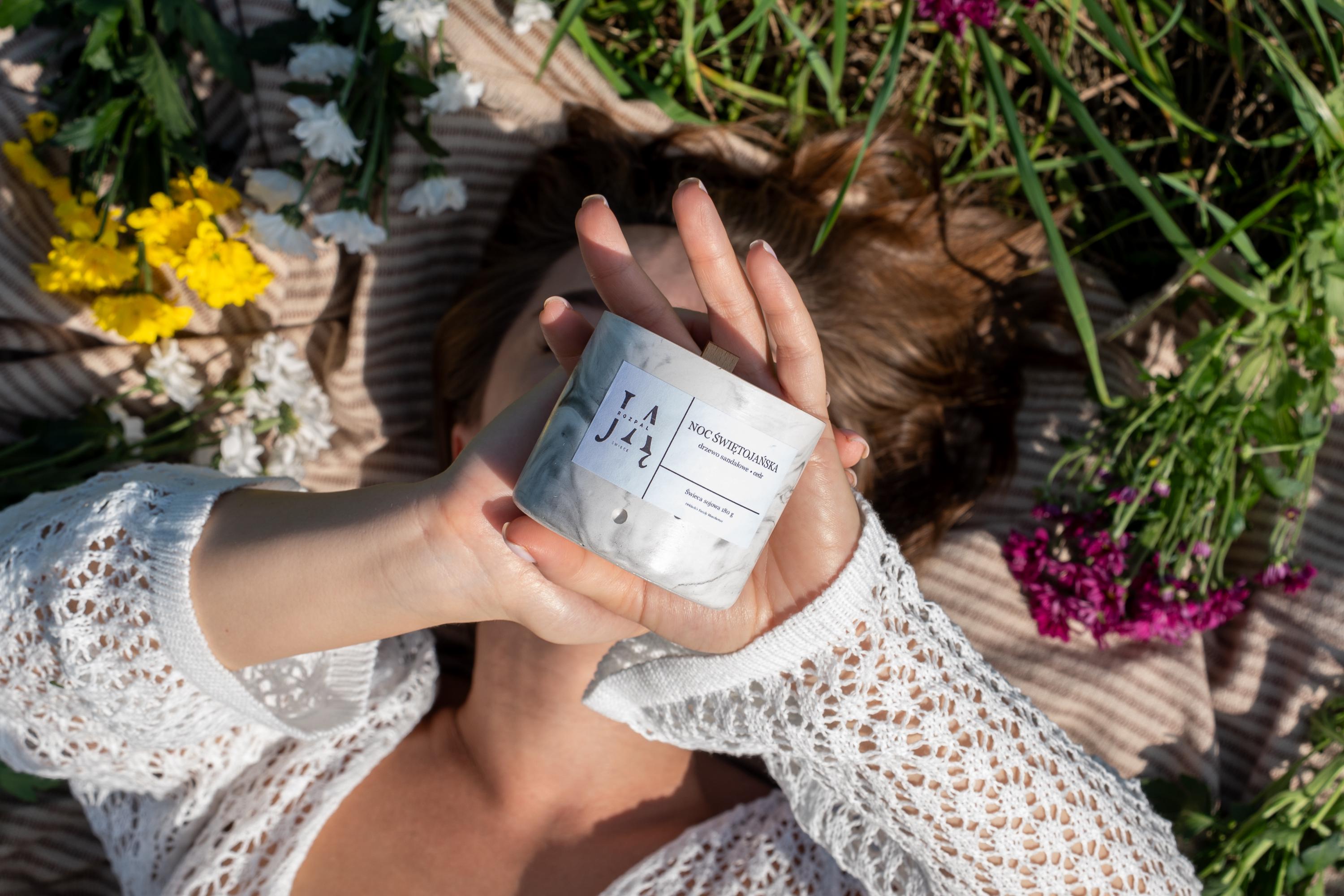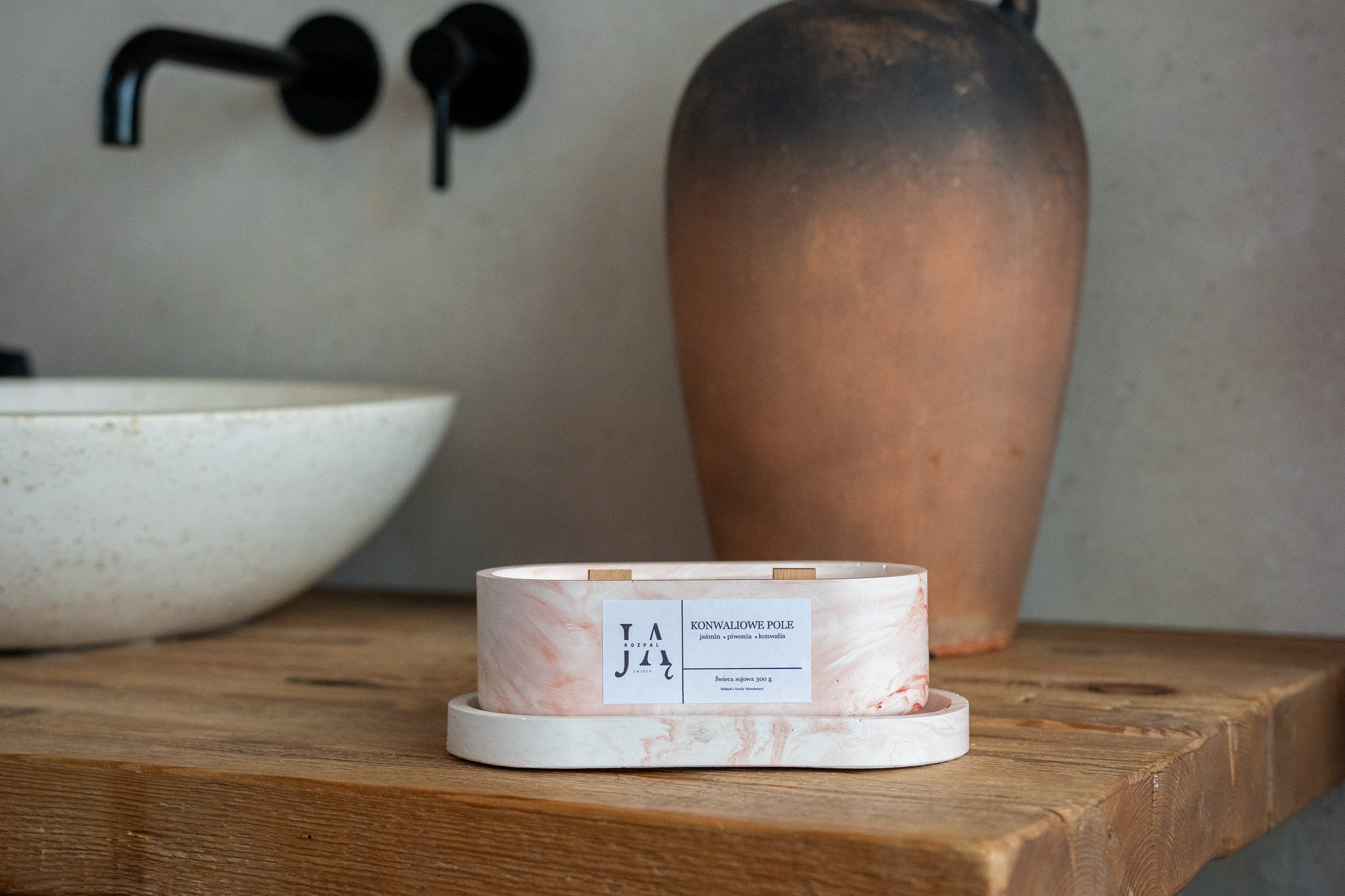 Ręcznie wykonana z 100% naturalnego wosku sojowego, pali się czysto i długo, wypełniając przestrzeń miękkim, otulającym aromatem.